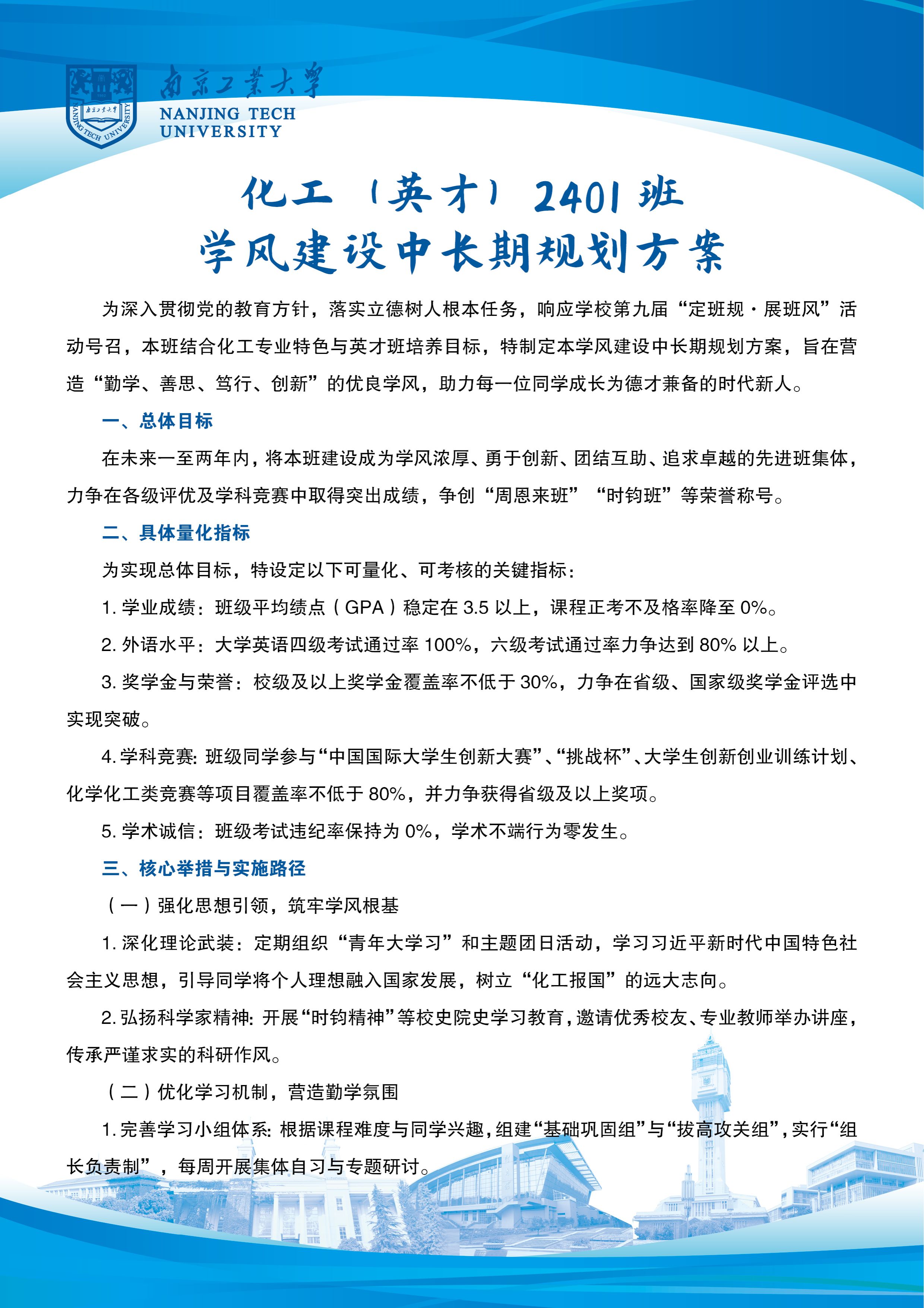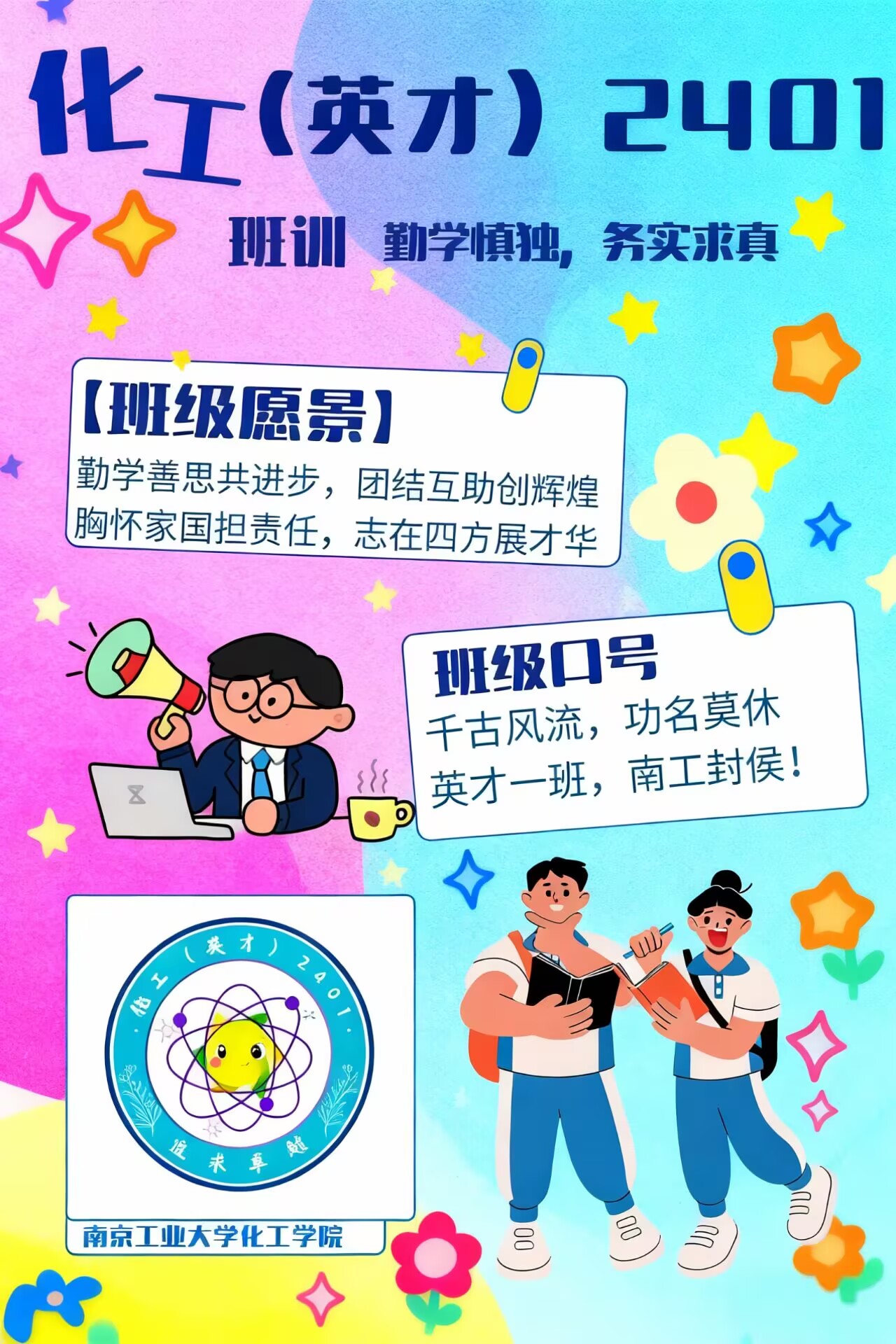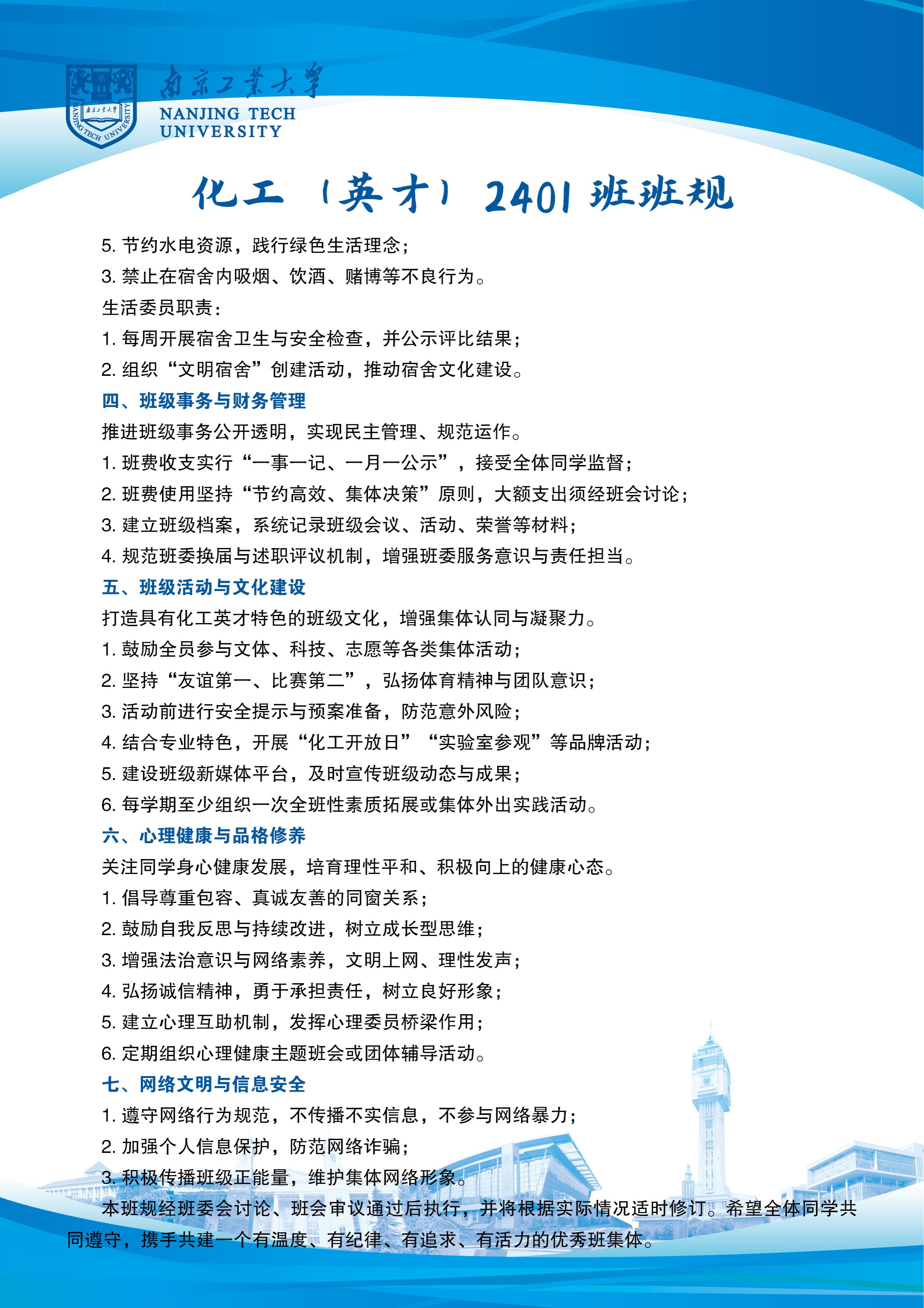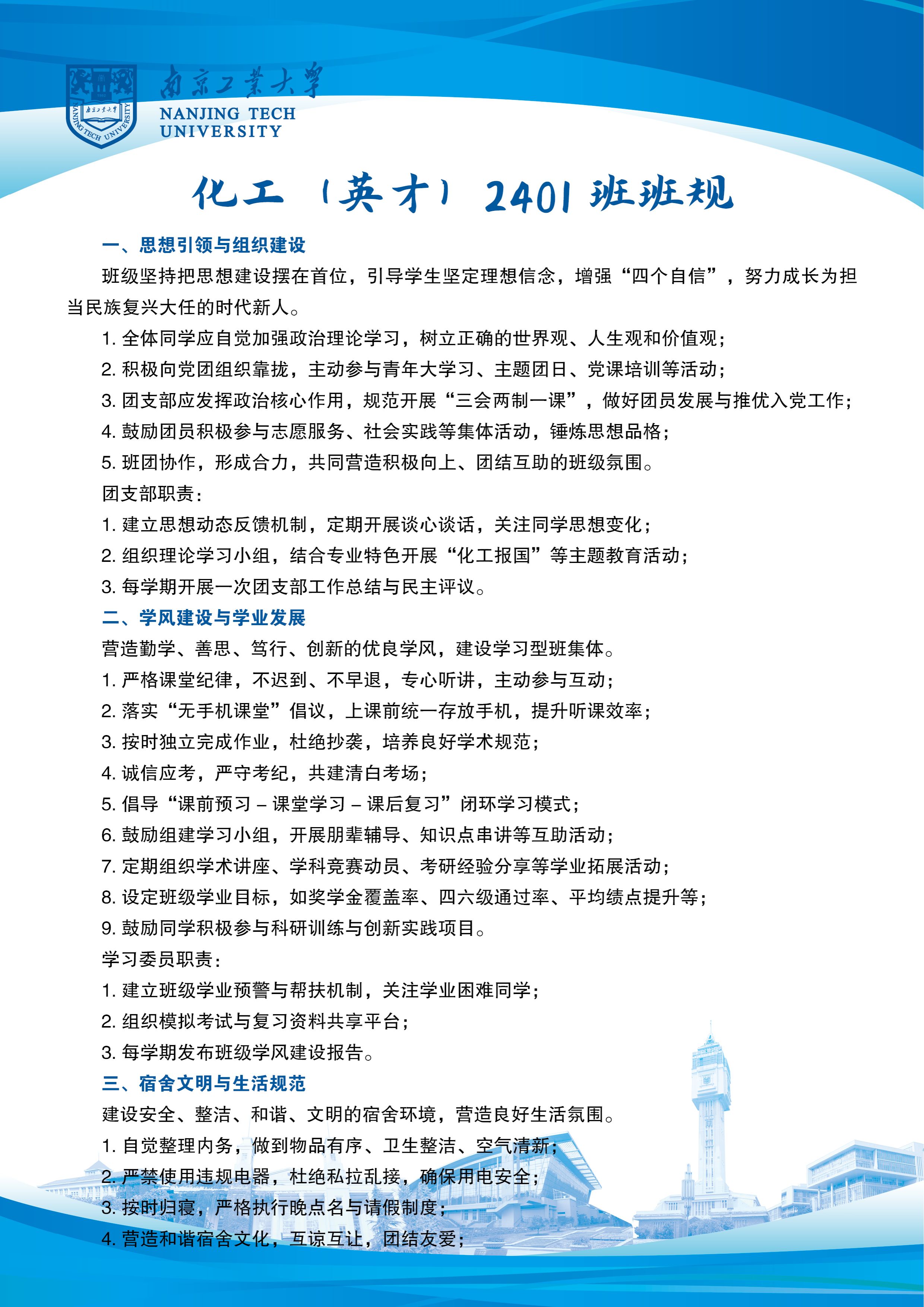 近日,南京工业大学举办了第九届“定班规·展班风”班级风采展示活动。我院各班级积极响应,认真准备。下面请大家一起欣赏一下化工(英才)2401班的风采吧!