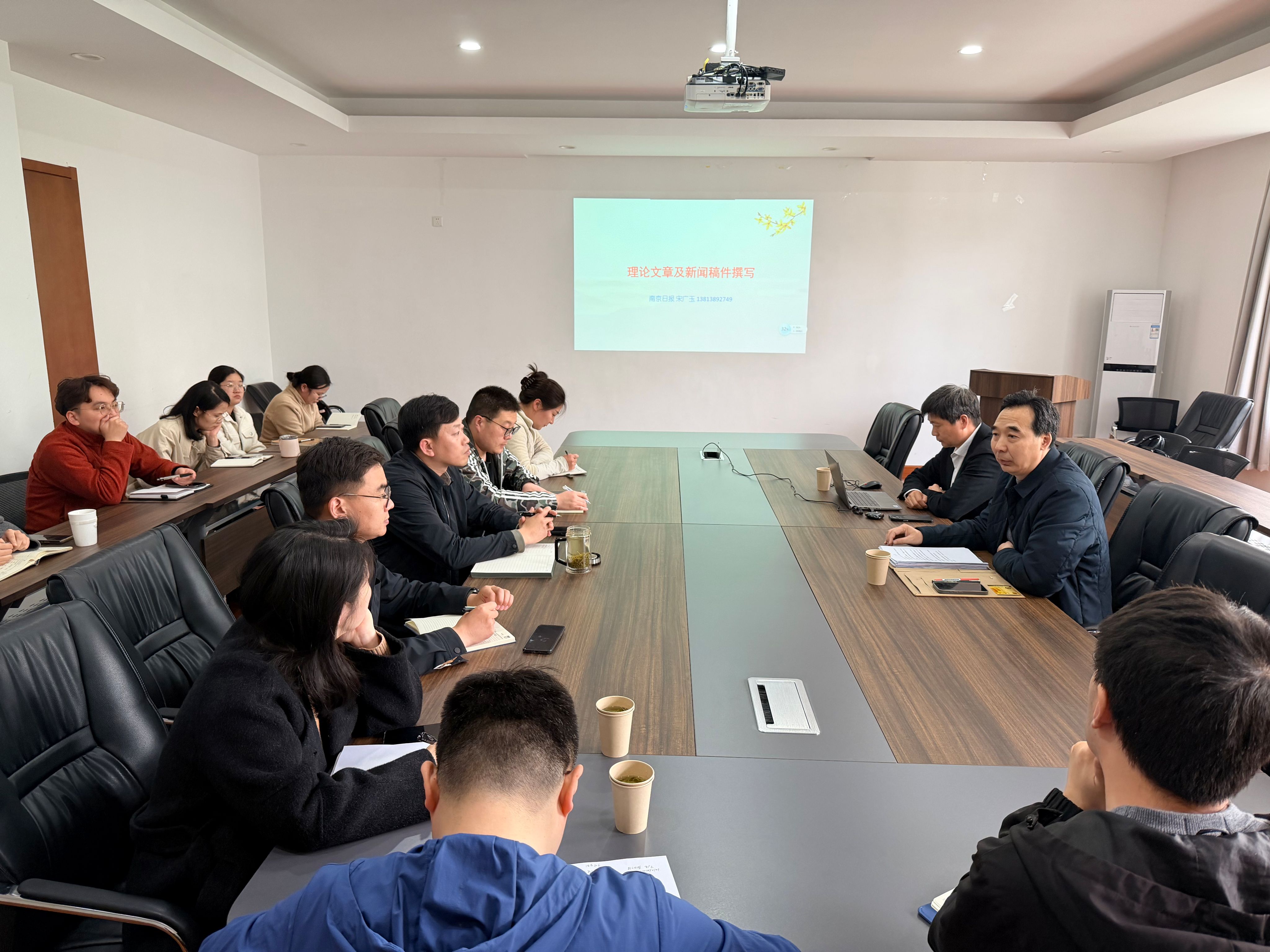 宋主任结合多年实践经验,系统讲解理论文章与新闻稿件的撰写要点,重点剖析理论文章的结构布局、导语写法及逻辑递进关系,阐述如何紧跟时政热点、把握“时效度”要求,进而提升文章的理论深度。他结合实际案例,详细介绍了新闻写作中消息、通讯、评论等体裁的分类,并就避免标题党、坚守真实性、强化舆情风险识别等注意事项作细致辅导。